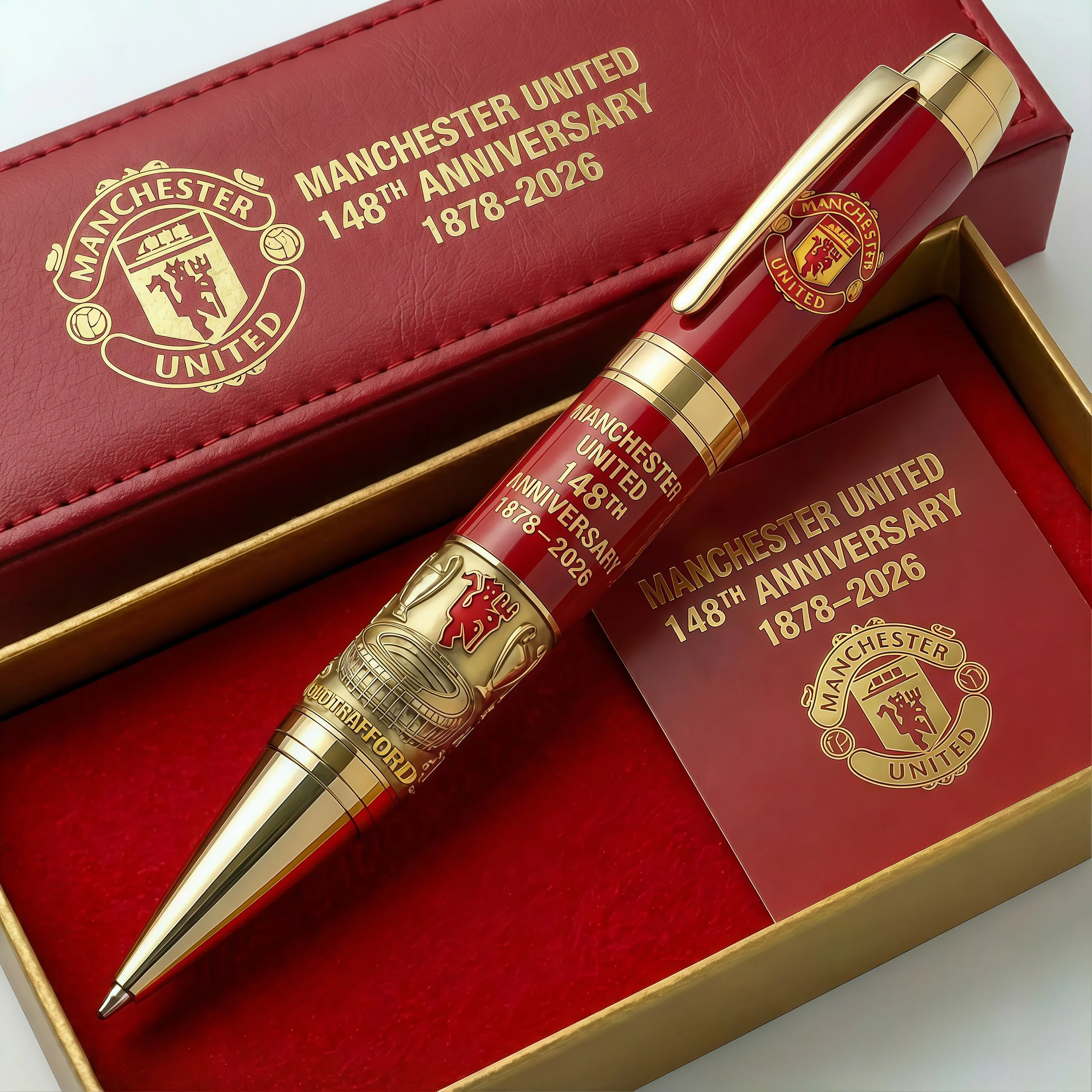 Dieses edle Schreibgerät für Sammler ✍️✨ greift die ikonischsten Symbole von Manchester United auf – das legendäre Wappen 🔰, historische Triumphe 🏆 und den Geist, der im Old Trafford geboren wurde ❤️🔥. Mit der Inschrift „148. Jubiläum 1878–2026“ versehen, ist dieses Stück nicht nur Dekoration, sondern eine Erinnerung daran, dass Größe von denen geschaffen wird, die den Verein voranbringen.